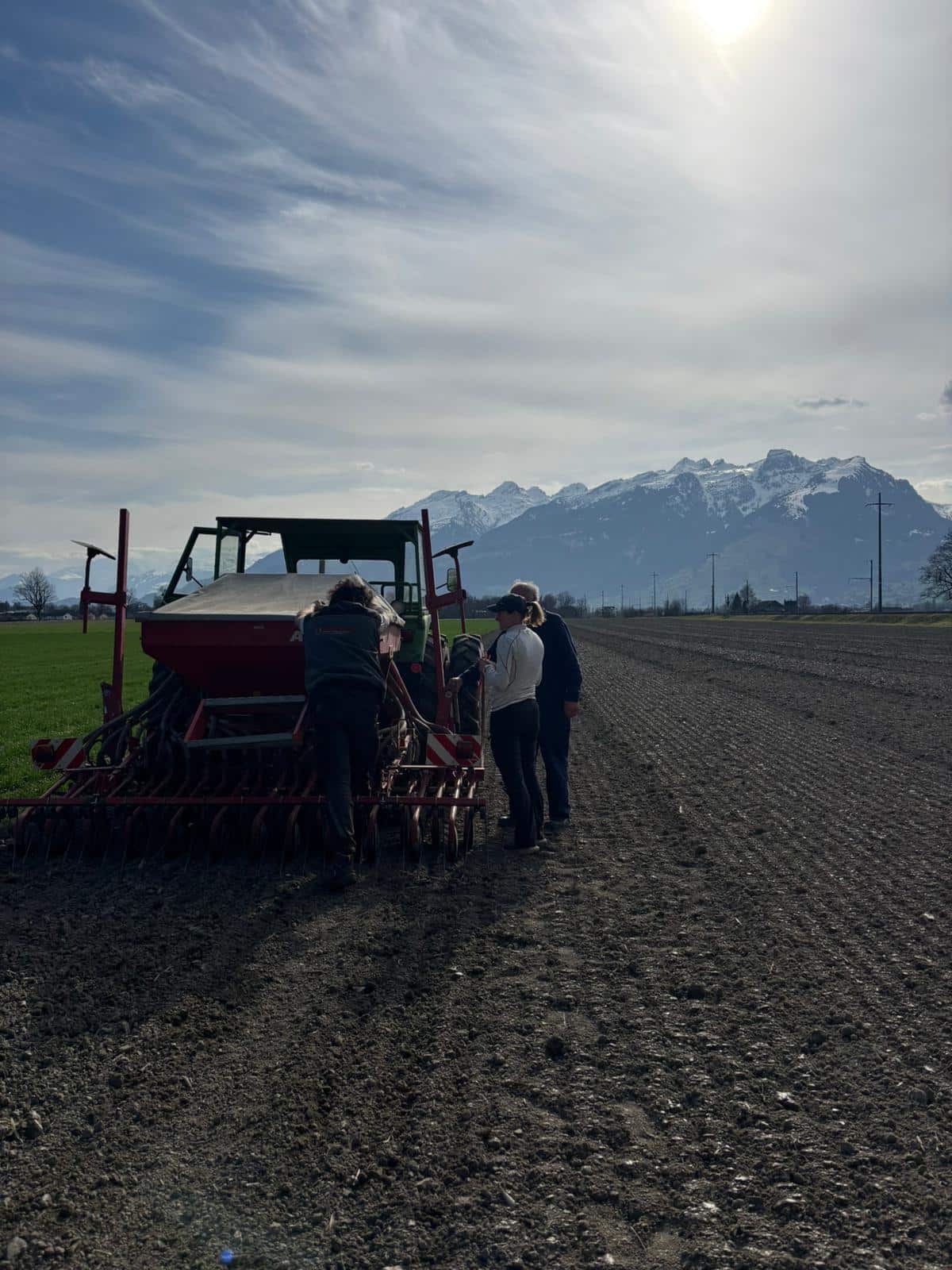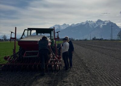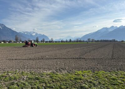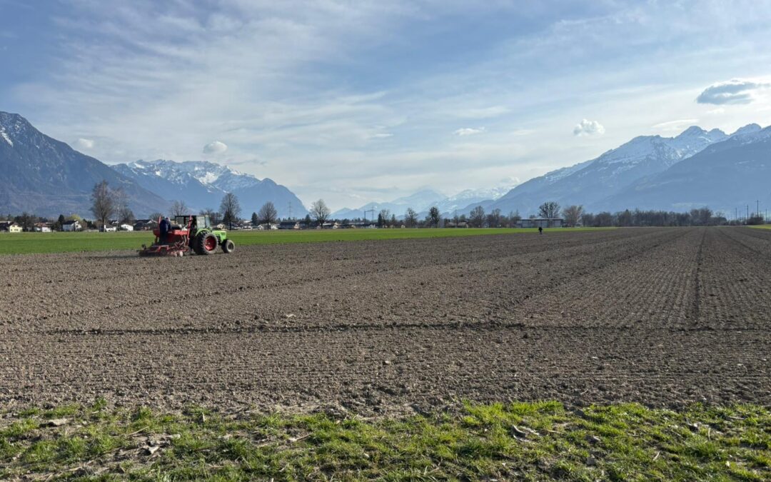 Bei optimalen Bedingungen konnten wir am 10. März die erste Produktionsfläche 2026 bei Haag SG ansäen. Der Boden ist durch die anhaltenden frühlingshaften Temperaturen in den letzten Tagen gut abgetrocknet. Durch den relativ schweren Boden des Standortes blieb dieser in Ablagetiefe der Ackerbohne schön feucht und gewährt zusammen mit dem vorausgesagten Regen gute Auflaufbedingungen.